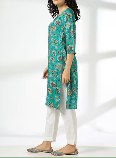 Elevate your everyday wardrobe with this graceful green kurta, offering a blend of comfort and style for the modern woman.
